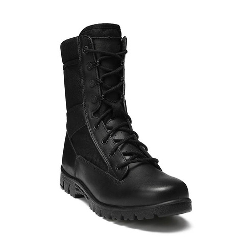 รองเท้าบูทหุ้มข้อหนังสีดำแบบเต็มเมล็ดมีพื้นยางรองเท้าต่อสู้ยุทธวิธีกลางแจ้ง